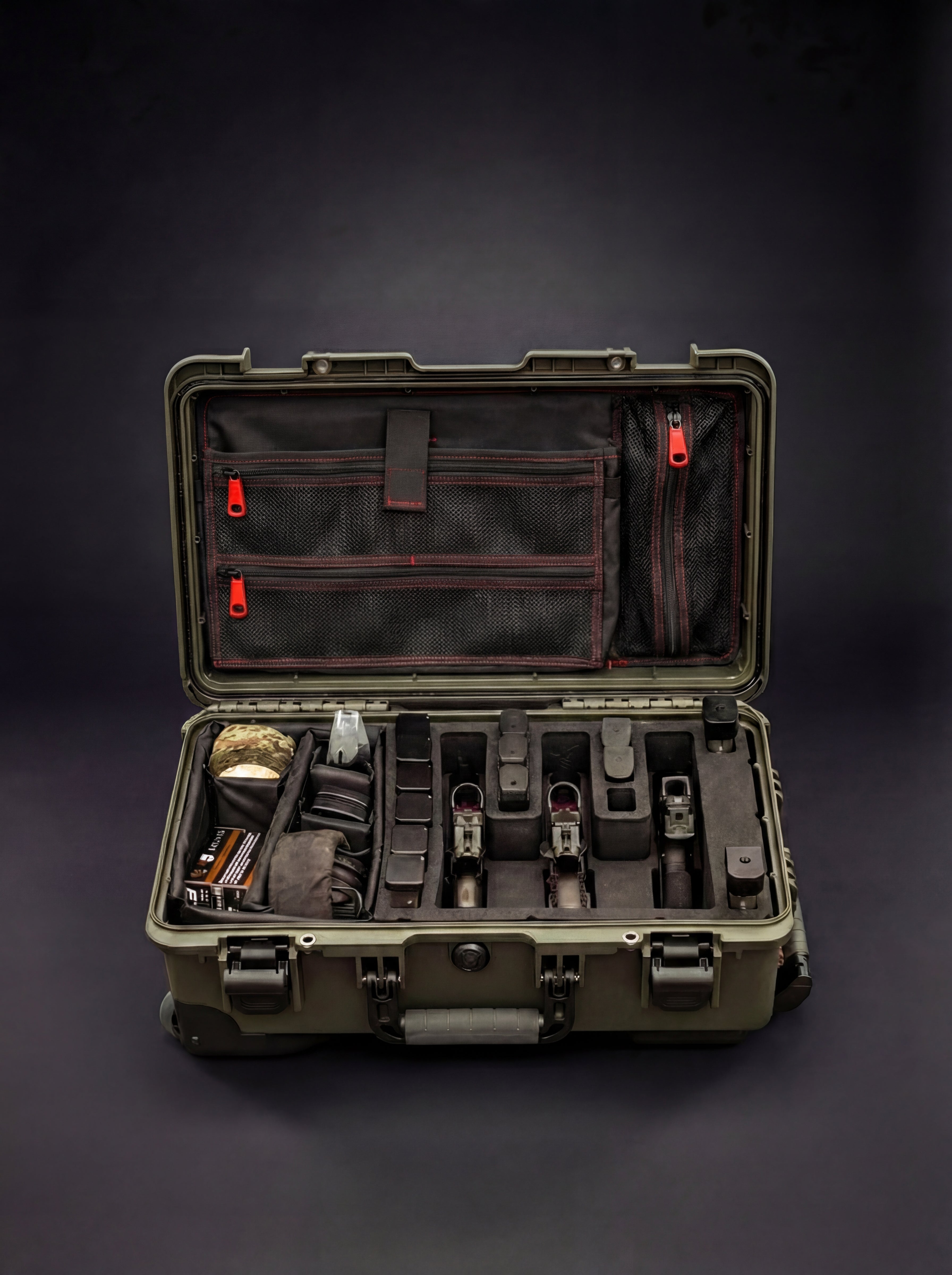 Stage at home, roll through security, deploy at the range—no repacking required. The case opens into your workstation. Magazines stand ready. Ammo stays organized. Tools visible. Same layout, same confidence, same result.